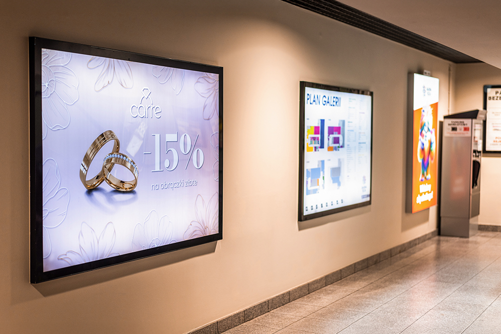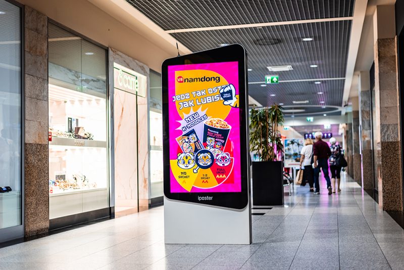 Dynamiczny przekaz, który przyciąga wzrok. Multimedialny ekran iPoster pozwala prezentować treści w nowoczesnej, cyfrowej formie, skutecznie angażując klientów Galerii Tęcza i wzmacniając komunikację marki w kluczowych punktach centrum.