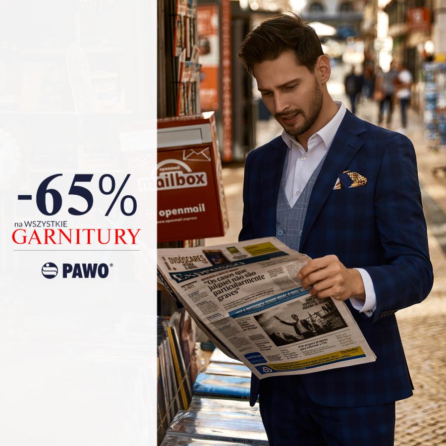 Oferta specjalna w PAWO! Tylko teraz -65% na WSZYSTKIE GARNITURY MĘSKIE! Do tego koszule już od 69zł, spodnie od 79zł, a marynarki od 99zł! Spiesz się - kto pierwszy ten ma!
