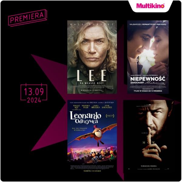 Od 13 września we wszystkich kinach sieci Multikino można oglądać premierowo polską produkcję „Niepewność. Zakochany Mickiewicz”, horror „Nie mów zła”, produkcję biograficzną „Lee. Na własne oczy” oraz animację familijną „Leonardo. Odkrywca”. Szczegółowy repertuar jest dostępny na stronie www.multikino.pl.