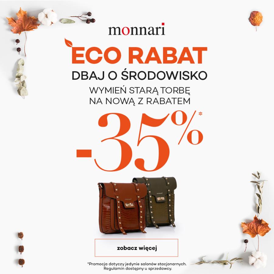 Akcja dotyczy salonów stacjonarnych. Regulamin dostępny u sprzedawcy oraz na https://emonnari.pl/regulamin-akcji-eco-rabat-2020-zamien-stara-torbe-na-nowa,67.html