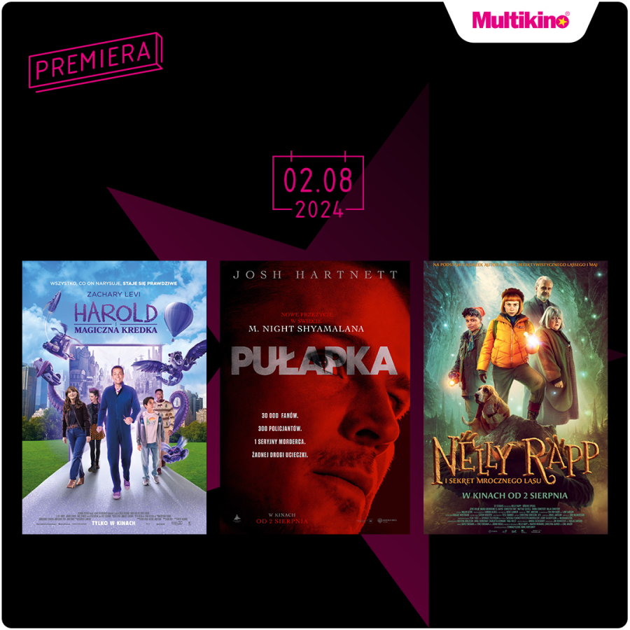Już 2 sierpnia do kin wejdzie „Pułapka”. Ojciec i jego nastoletnia córka udają się na koncert muzyki pop, gdzie zdają sobie sprawę, że znaleźli się w epicentrum mrocznego i złowieszczego wydarzenia. Scenarzystą i reżyserem filmu jest M. Night Shyamalan, a w rolach głównych występują Josh Hartnett, Ariel Donoghue, Saleka Shyamalan, Hayley Mills i Allison Pill.