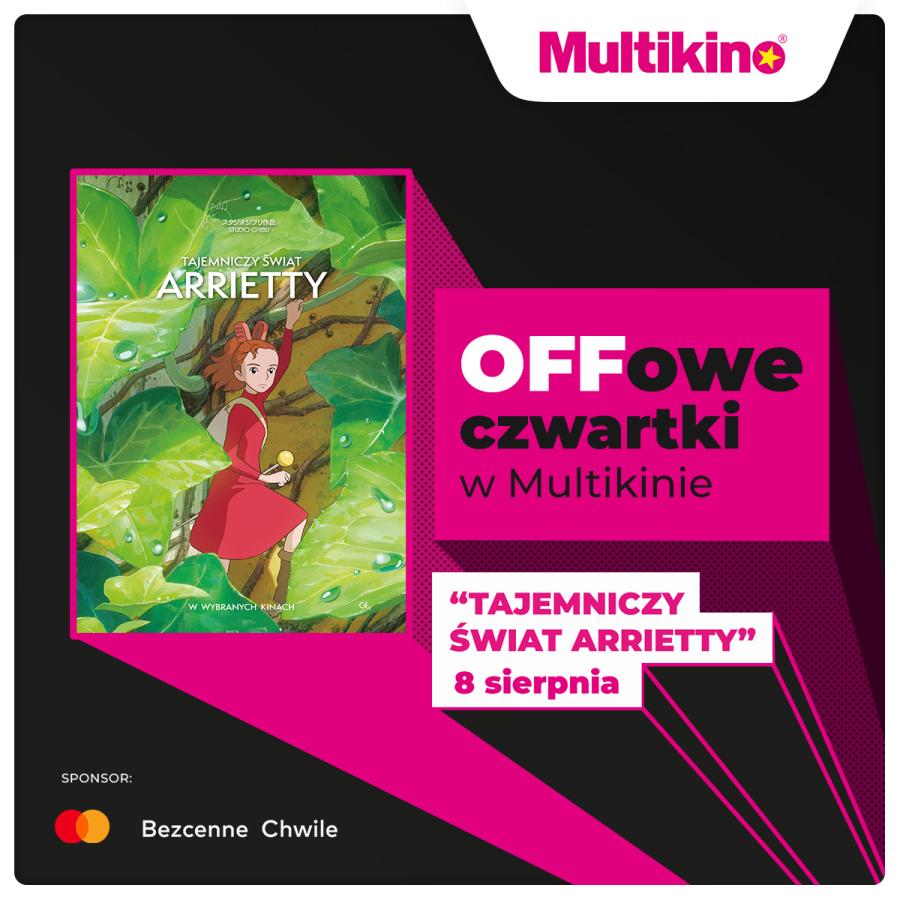 8 sierpnia o godzinie 20.00 w ramach cyklu filmowego „OFFowe czwartki” w Multikinie widzowie będą mogli zobaczyć film anime „Tajemniczy świat Arrietty”.