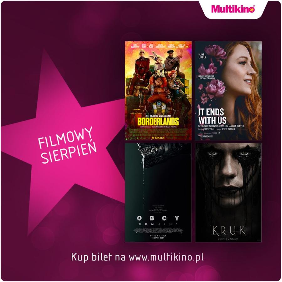 Wakacyjny okres to wspaniała okazja do spędzenia czasu z rodziną i przyjaciółmi i wybrania się na seans filmowy. W sierpniu na wielkim ekranie będzie można zobaczyć między innymi: „Borderlands”, „Motocykliści” z Austinem Butlerem, „I Ends With Us” z Blake Lively, „Obcy: Romulus”, „Horyzont. Rozdział 2” oraz „Kruk”. Szczegółowy repertuar jest dostępny na stronie www.multikino.pl.