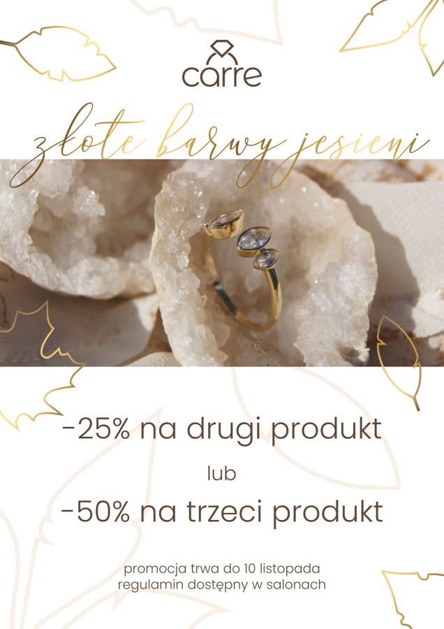 -25% na drugą sztukę oraz -50% na trzecią sztukę biżuteriiOdwiedź naszą stronę internetową www.jubilercarre.pl i skorzystaj z