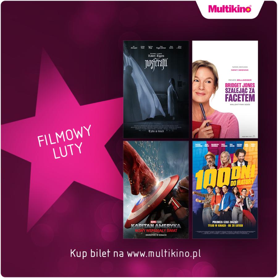 W lutym w kinach sieci Multikino na widzów czekają filmowe ferie, pełen emocji walentynkowy weekend oraz wiele wyczekiwanych filmowych premier. W repertuarze będzie można znaleźć między innymi: „Marię” z Angeliną Jolie, „Bridget Jones: szalejąc za facetem” z Renée Zellweger, „Kapitana Amerykę: Nowy wspaniały świat”, horror „Nosferatu” oraz polską produkcję „100 dni do matury”, w której zadebiutują najpopularniejsi polscy influencerzy, związani z grupami Ekipa i Genzie. Szczegółowy repertuar jest dostępny na stronie www.multikino.pl.