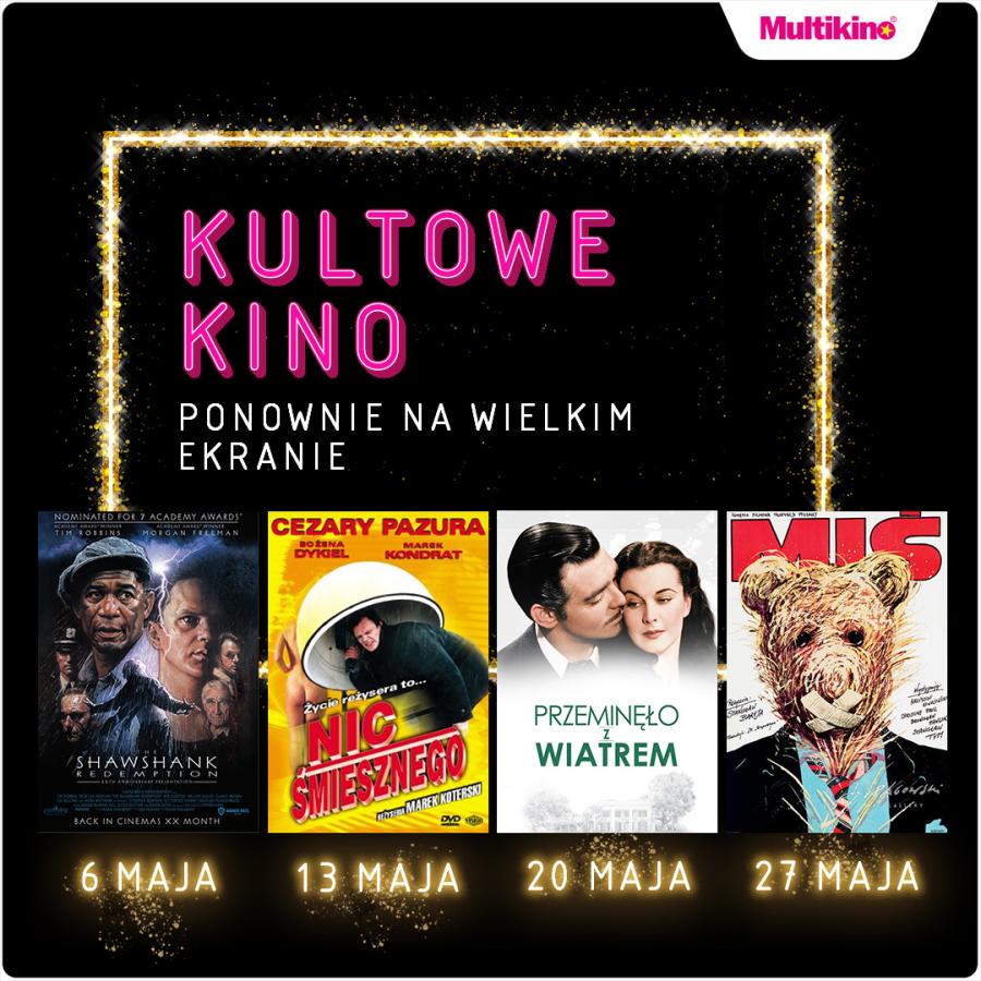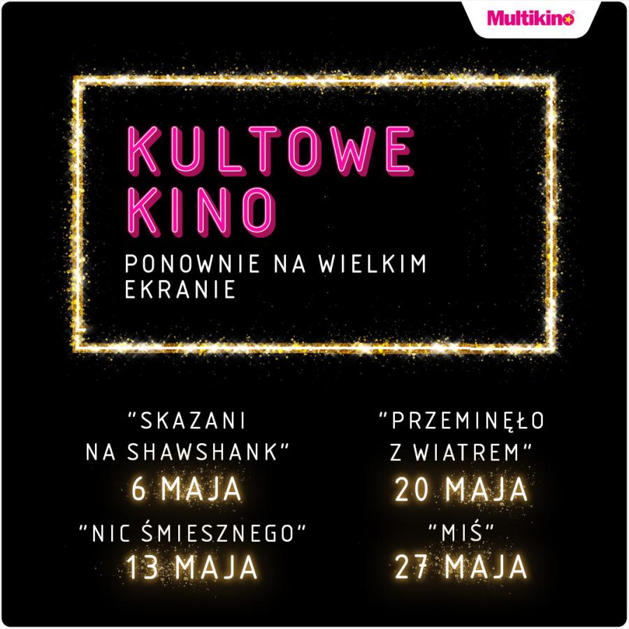 We wszystkich kinach sieci Multikino w maju rozpoczyna się cykl „Kultowe Kino”. W każdy poniedziałek na widzów będzie czekał inny kultowy film, który będzie można zobaczyć na wielkim ekranie. W repertuarze zlazły się: „Skazani na Shawshank” (6 maja), „Nic śmiesznego” (13 maja), „Przeminęło z wiatrem” (20 maja) oraz „Miś” (27 maja).