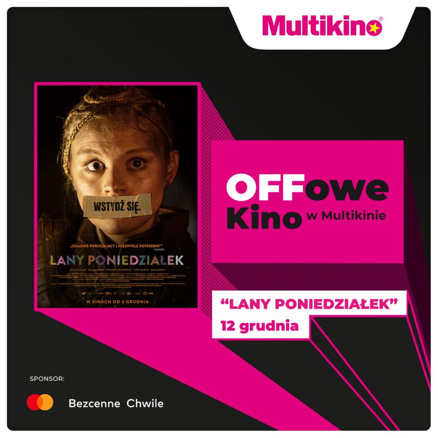 Projekt „OFFowe Kino” odbywa się w kinach sieci Multikino. Podczas kolejnych projekcji w ramach cyklu widzowie będą mieli okazję zobaczyć: 12 grudnia „Lany poniedziałek”, 19 grudnia „Pod skórą” oraz 26 grudnia „W pokoju obok”.