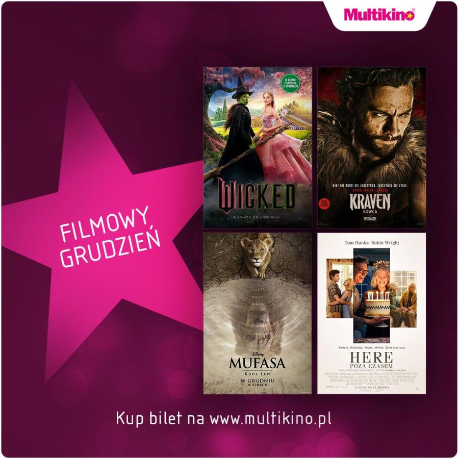 Ostatnie 31 dni 2024 roku przyniesie widzom wiele niezwykłych, filmowych emocji, a to wszystko za sprawą takich filmów, jak: „Wicked”, „Władca pierścieni: wojna Rohirrimów”, „Kraven Łowca”, „Mufasa: Król Lew” czy „Here. Poza czasem”. Szczegółowy repertuar jest dostępny na stronie www.multikino.pl.