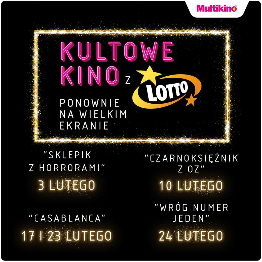 We wszystkich kinach sieci Multikino można wziąć udział w seansie w ramach cyklu „Kultowe Kino”. W każdy poniedziałek o 20.00 na widzów czeka inny kultowy film, który można zobaczyć w sali kinowej i poczuć się jak na premierze wiele lat wcześniej. Część produkcji ma również dodatkowym pokaz w inny dzień tygodnia. W repertuarze na nadchodzący miesiąc znalazły się: „Sklepik z horrorami” (3 lutego), „Czarnoksiężnik z Oz” (10 lutego), „Casablanca” (17 i 23 lutego) oraz „Wróg numer jeden” (24 lutego).