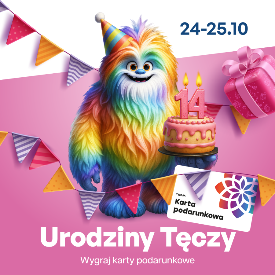Już 24 i 25 października 2025 r. zapraszamy wszystkich klientów do wspólnego świętowania urodzin Galerii Tęcza! W tych dniach, w godzinach 12:00–17:00, na naszych gości czekać będzie wyjątkowa atrakcja – konkurs „W labiryncie nagród” z fantastycznymi upominkami.